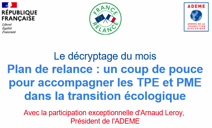 Ce décryptage sera l'occasion de découvrir les dispositifs pour toutes les TPE / PME, de lever vos réticences à déposer un dossier et de vous donner envie d'engager votre entreprise dans la transition écologique.